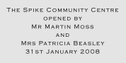 Another plaque is added below the HLF one stating that the Spike Community Centre was opened by Mr Martin Moss and Mrs Patricia Beasley.